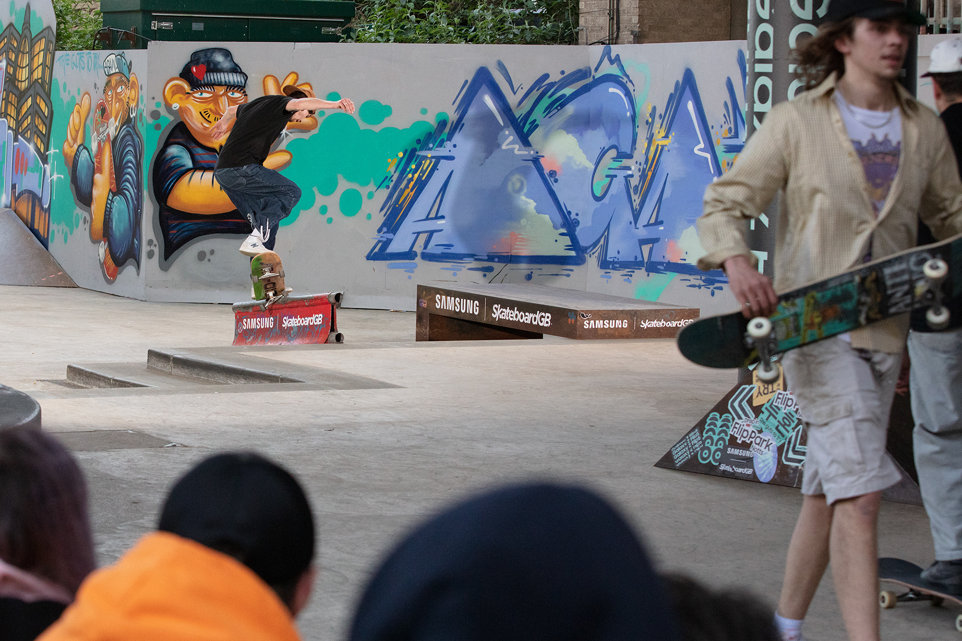 This job was a team effort collaboration with artists JP, Dilk and Scarce to create a backdrop for a special event at the tramlines skate spot. Working to a specified brief with a set colour theme. We took a key phrase from within the brief: The guts to do it again and again, again till you land it - evoked from the Korean spirit of ‘Tu-hon’ which means fighting spirit or the warriors mindset.